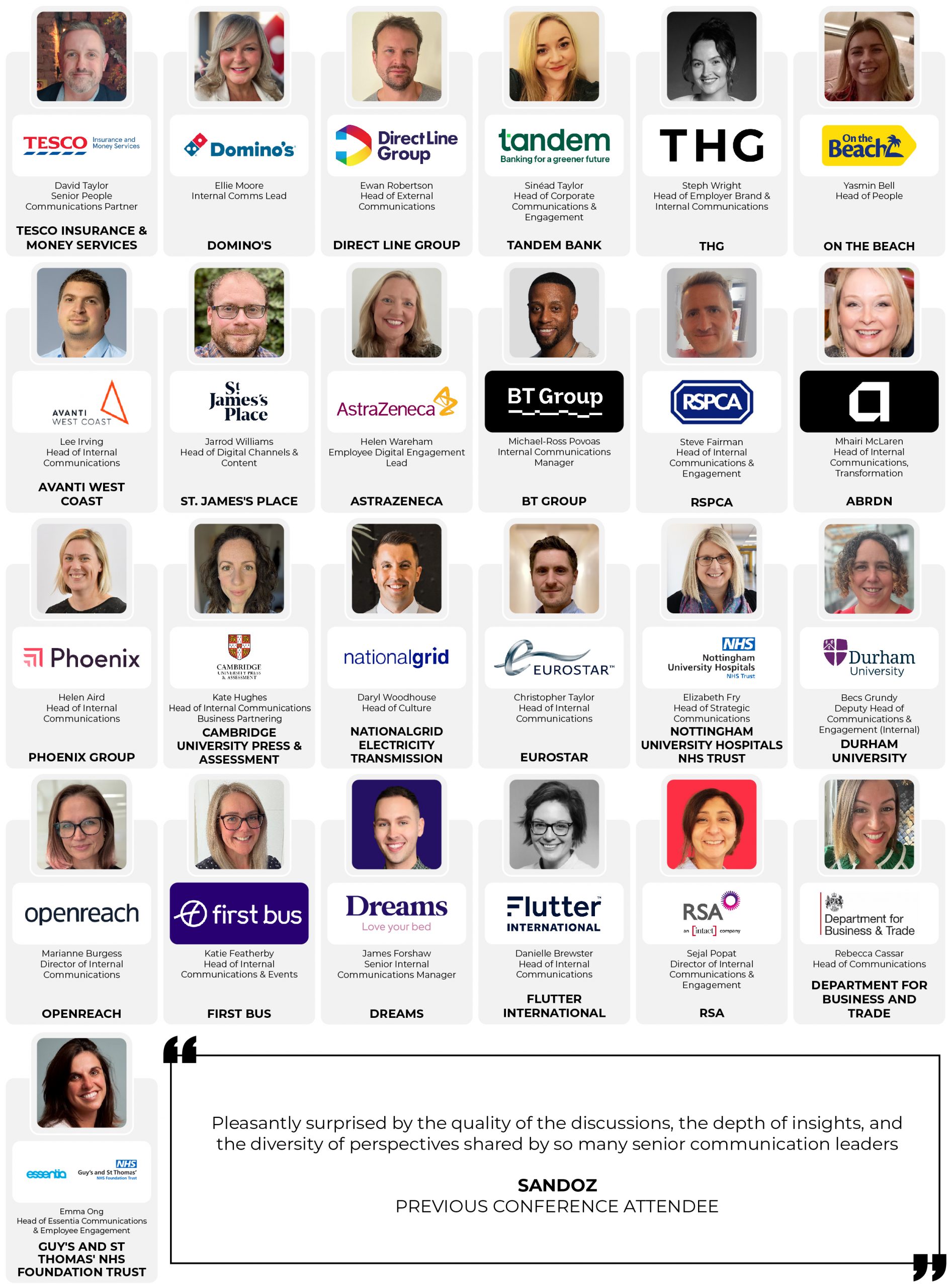 28+ Leading Cross-Sector Internal Communications Directors Present On: Proven & Practical AI, Tech & Digital Transformation ■ New Optimised Channel Mix Strategies ■ Engaging Hard-To-Reach, Dispersed & Remote Employees ■ Fostering A Culture That Drives Employee Engagement ■ High-Impact, Stand-Out Content, Campaigns & Messaging ■ Consistent, Authentic & Purpose-Driven Leadership ■ The Strategic Role & Value Of Internal Communications In 2026 & Beyond ■ Handling Change & Avoiding Burnout ■ D&I: Driving Inclusion In IC ■ Navigating IC Budgets- Do More With Less