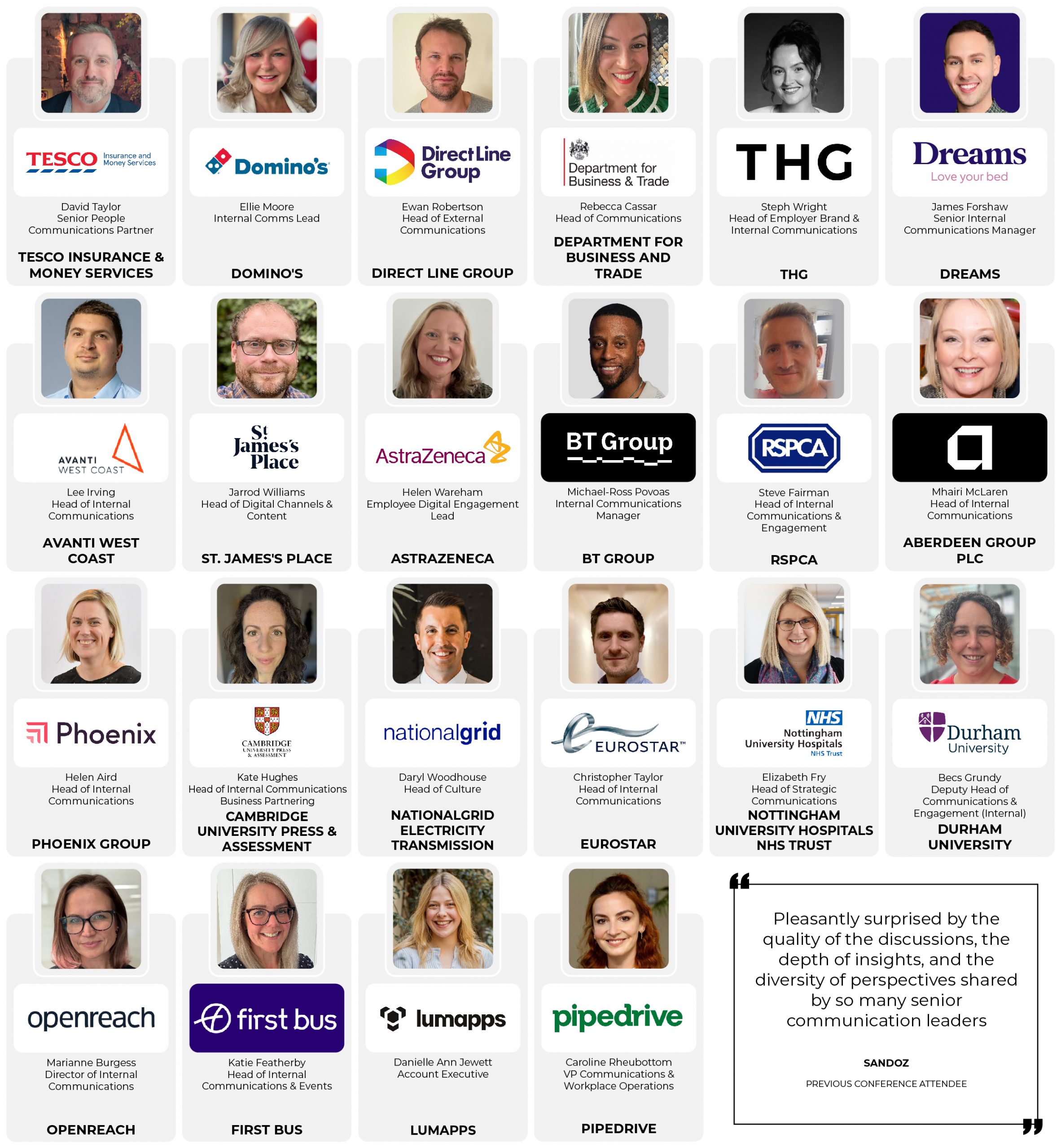 20+ Leading Cross-Sector Internal Communications Directors Present On: Proven & Practical AI, Tech & Digital Transformation ■ New Optimised Channel Mix Strategies ■ Engaging Hard-To-Reach, Dispersed & Remote Employees ■ Fostering A Culture That Drives Employee Engagement ■ High-Impact, Stand-Out Content, Campaigns & Messaging ■ Consistent, Authentic & Purpose-Driven Leadership ■ The Strategic Role & Value Of Internal Communications In 2026 & Beyond ■ Handling Change & Avoiding Burnout ■ D&I: Driving Inclusion In IC ■ Navigating IC Budgets- Do More With Less